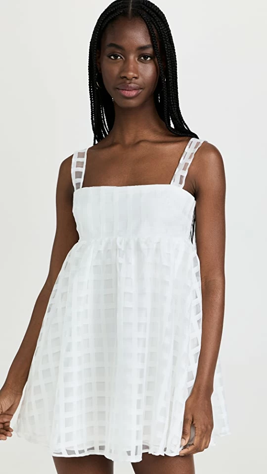 Bright-white chiffon composes this Amanda Uprichard babydoll dress, while a subtle check motif provides an understated accent. Round out your look with the tonal sandals of your choice.