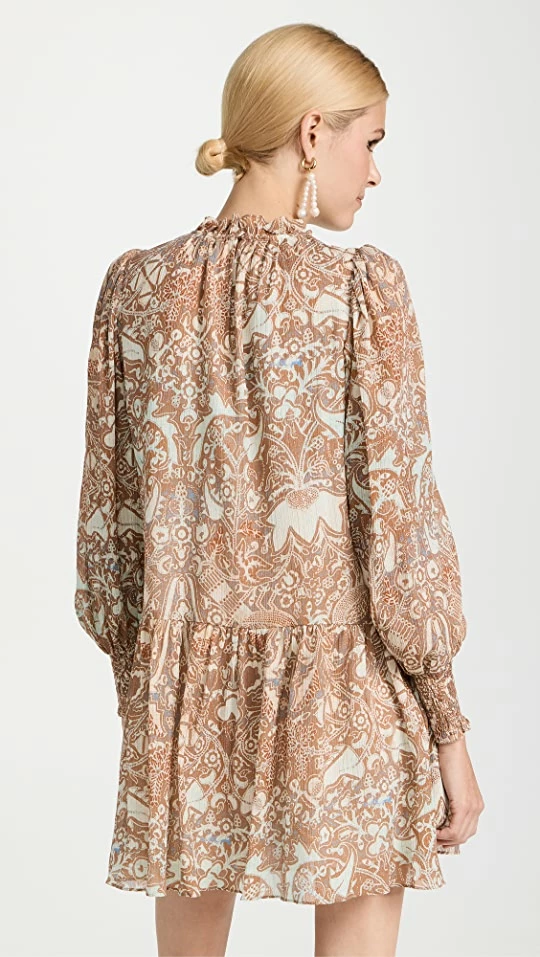 - High neckline and long sleeves with smocked elastic cuffs