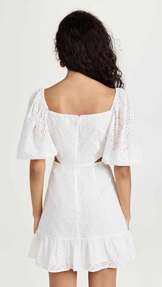 Summery and sweet in crisp white eyelet, this WAYF dress brings an of-the-moment touch to a classic sundress with puff sleeves and a cutout waist. Pair this pretty mini with anything from simple slides to wrap-up sandals.